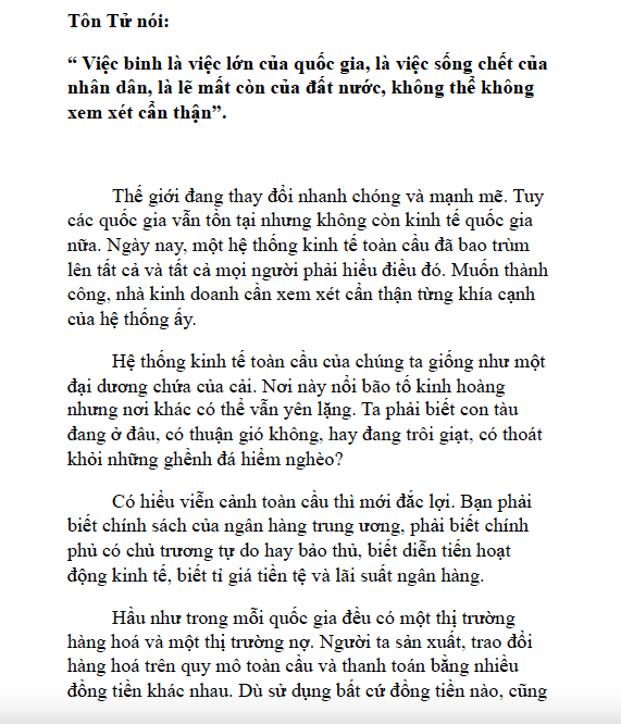Sách bản tiếng Việt dịch từ quyển Sun Tzu's Art of War for Traders and Investors của Dean Lundell. Đây là bản đánh máy lại.